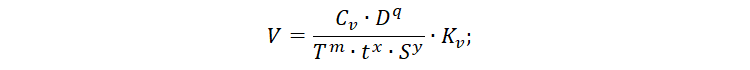 где t – глубина резания (мм); D – диаметр инструмента; S – подача (мм/об); T – стойкость инструмента (мин); Cv,q,m,y,х – поправочные коэффициенты при зенкеровании и развёртывании (также выбираются из справочной таблицы).