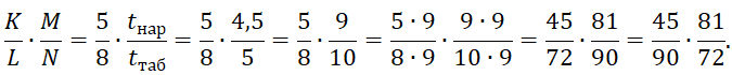 Для удобства расчёта мы предварительно умножили дробь 4,5/5 на 2. Затем мы умножили наши дроби на число 9, которое позволяет нам использовать шестерни из основного набора (z=72, z=90,z=81). В связи с тем, что у ведомой шестерни N число зубьев оказалось равным 90, то мы поменяли ведомые шестерни L и N местами. Такая замена не меняет величину передаточного отношение гитары деления и также позволяет выполнить условия сцепляемости (N≤73). Рассчитав гитару деления, производим установку сменных шестерён, как показано на рисунке 3.