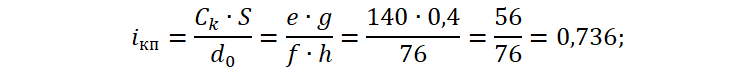где Сk=140 – постоянная величина цепи круговых подач (5122), S – круговая черновая подача (S=0,4мм/дв.ход взята из таблицы), d0=76мм – делительный диаметр долбяка, e,g – ведущие шестерни гитары, f,h – ведомые колеса гитары круговых подач. К тому же гитара круговых подач имеет одно важное условие: e+f=g+h=100. При черновой подаче в наладке участвует только пара шестерен e, f. Пара шестерен g,h имеет одинаковое число зубьев (z=50). Так как должно соблюдаться условие (e+f=100), то подбираем ближайшее соотношение шестерен: